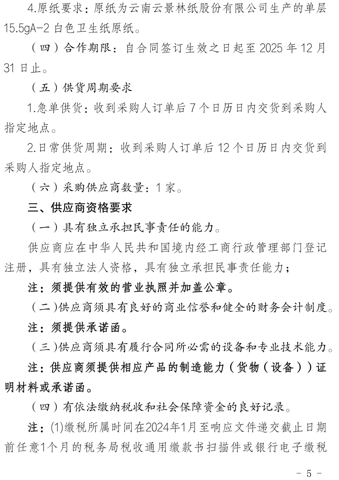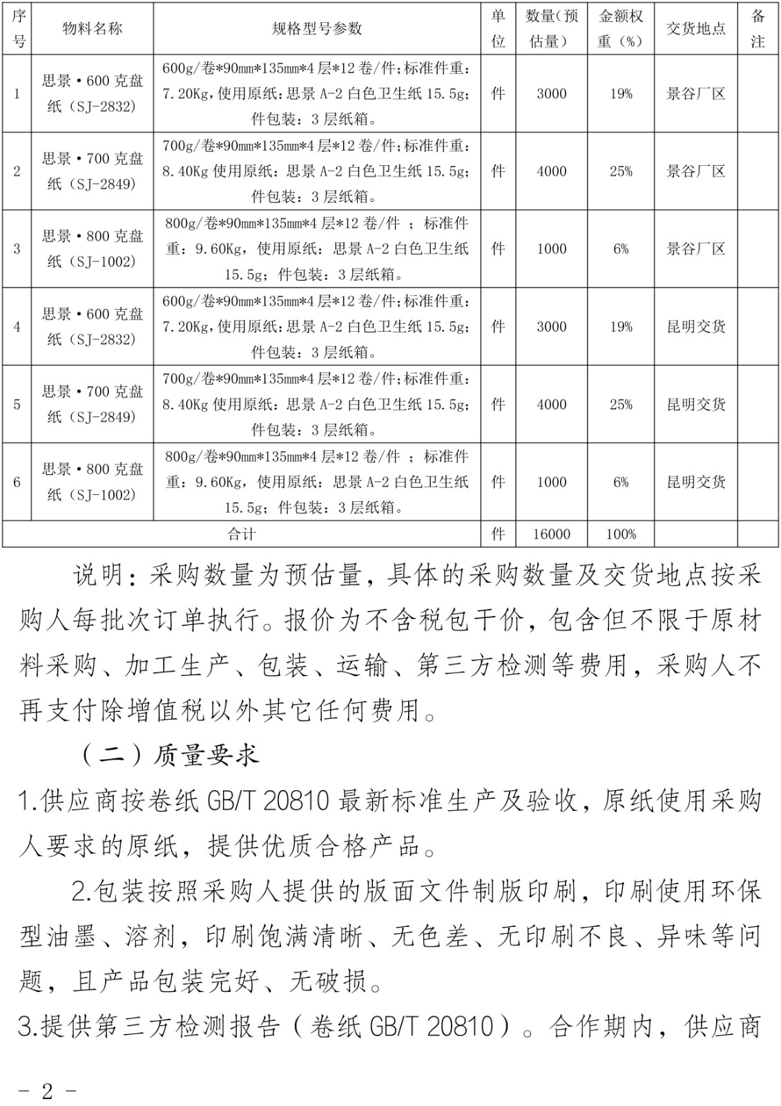 云南云景林紙股份有限公司2025年思景擦手紙采購項(xiàng)目(二次)采購公告