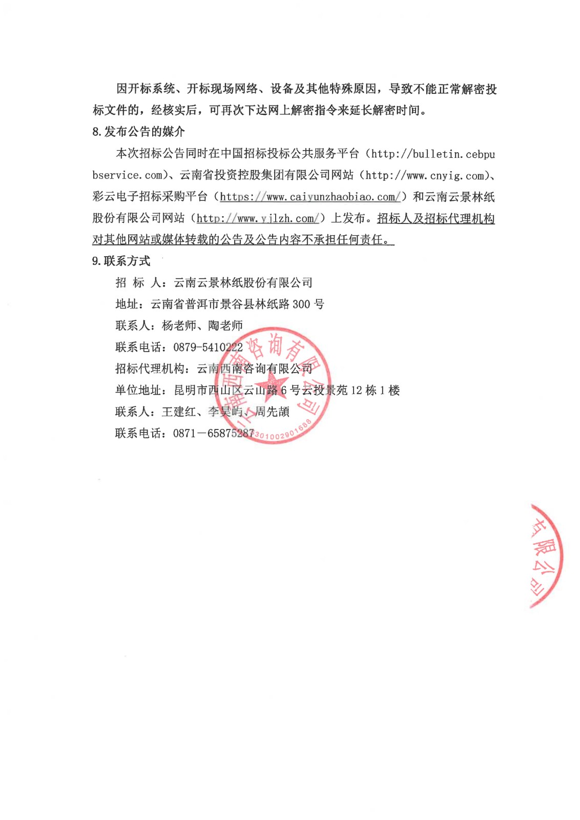 云南云景林紙股份有限公司2025年零星電儀設備檢修安裝業(yè)務外包談判采購公告