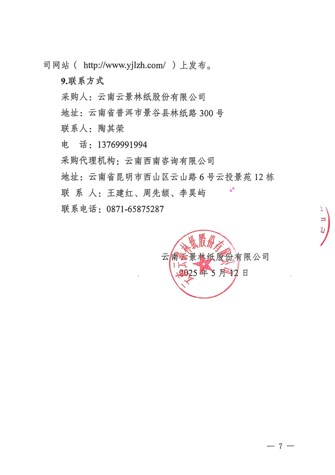 云南云景林紙股份有限公司2025年思景盤紙采購項目(二次)詢比采購成交結(jié)果公示