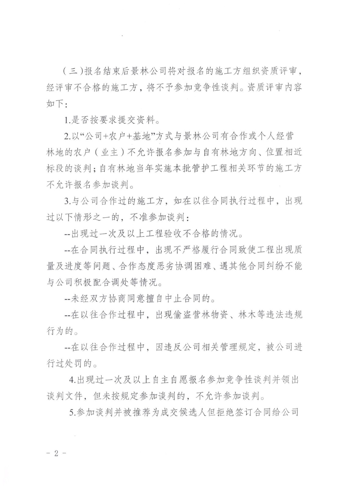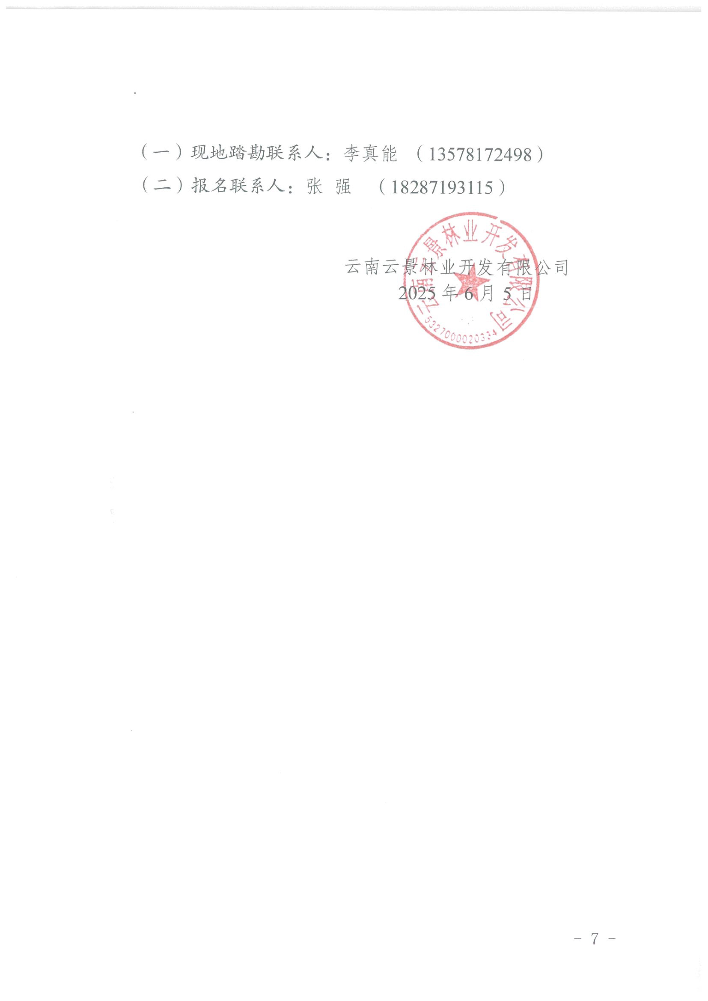 云南云景林業(yè)開發(fā)有限公司2025年林業(yè)業(yè)務(wù)(造林)承攬公開談判的公告