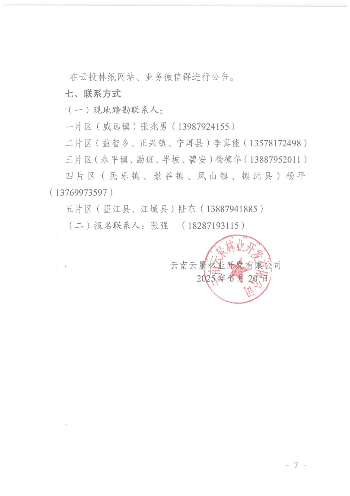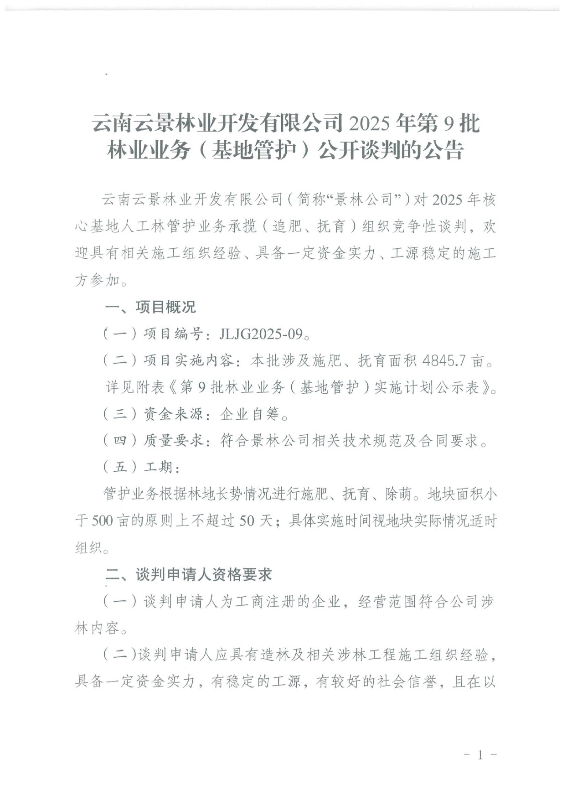 云南云景林業(yè)開發(fā)有限公司2025年第9批林業(yè)業(yè)務(wù)(基地管護)公開談判的公告