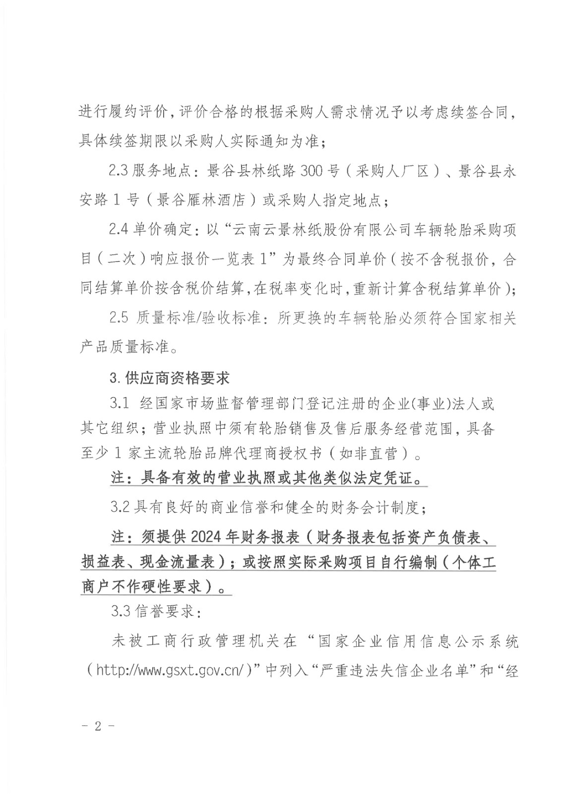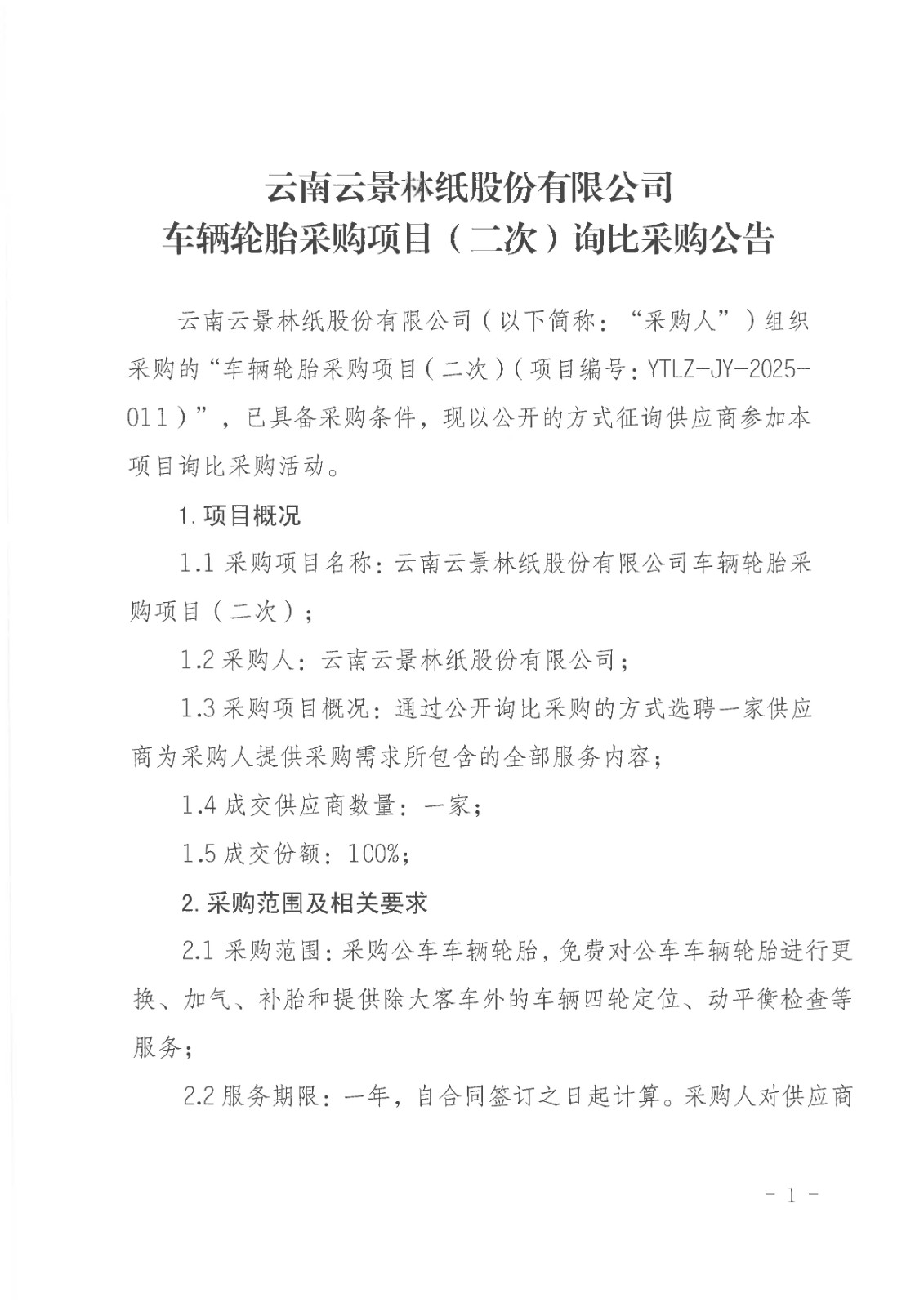 云南云景林紙股份有限公司車輛輪胎采購項目(二次)詢比采購公告