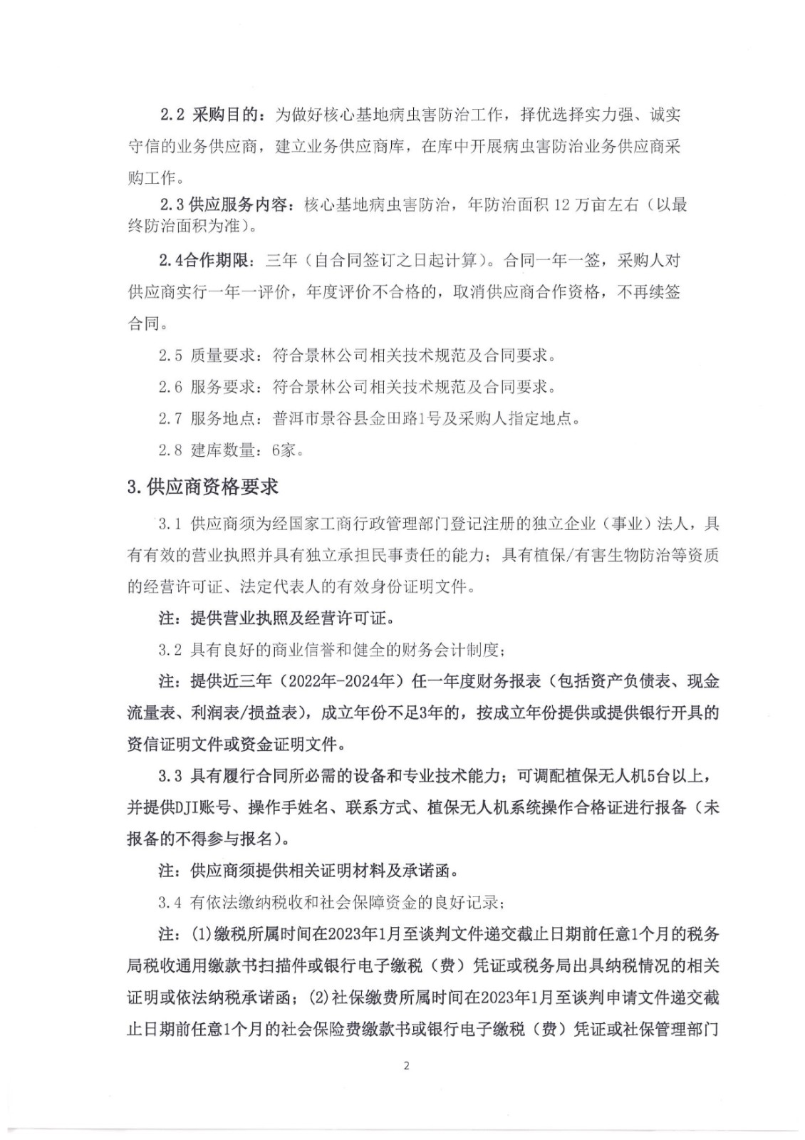 云南云景林業(yè)開發(fā)有限公司關(guān)于核心基地病蟲害無人機防治業(yè)務(wù)供應商建庫采購項目招標的公告