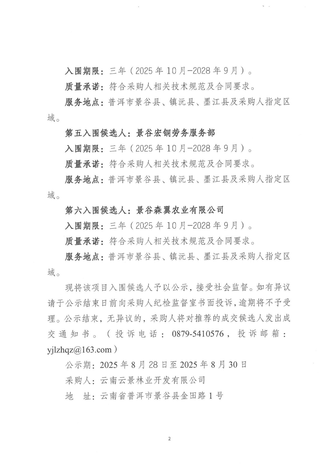 云南云景林業(yè)開發(fā)有限公司核心基地病蟲害無人機(jī)防治業(yè)務(wù)供應(yīng)商采購人圍候選人公示