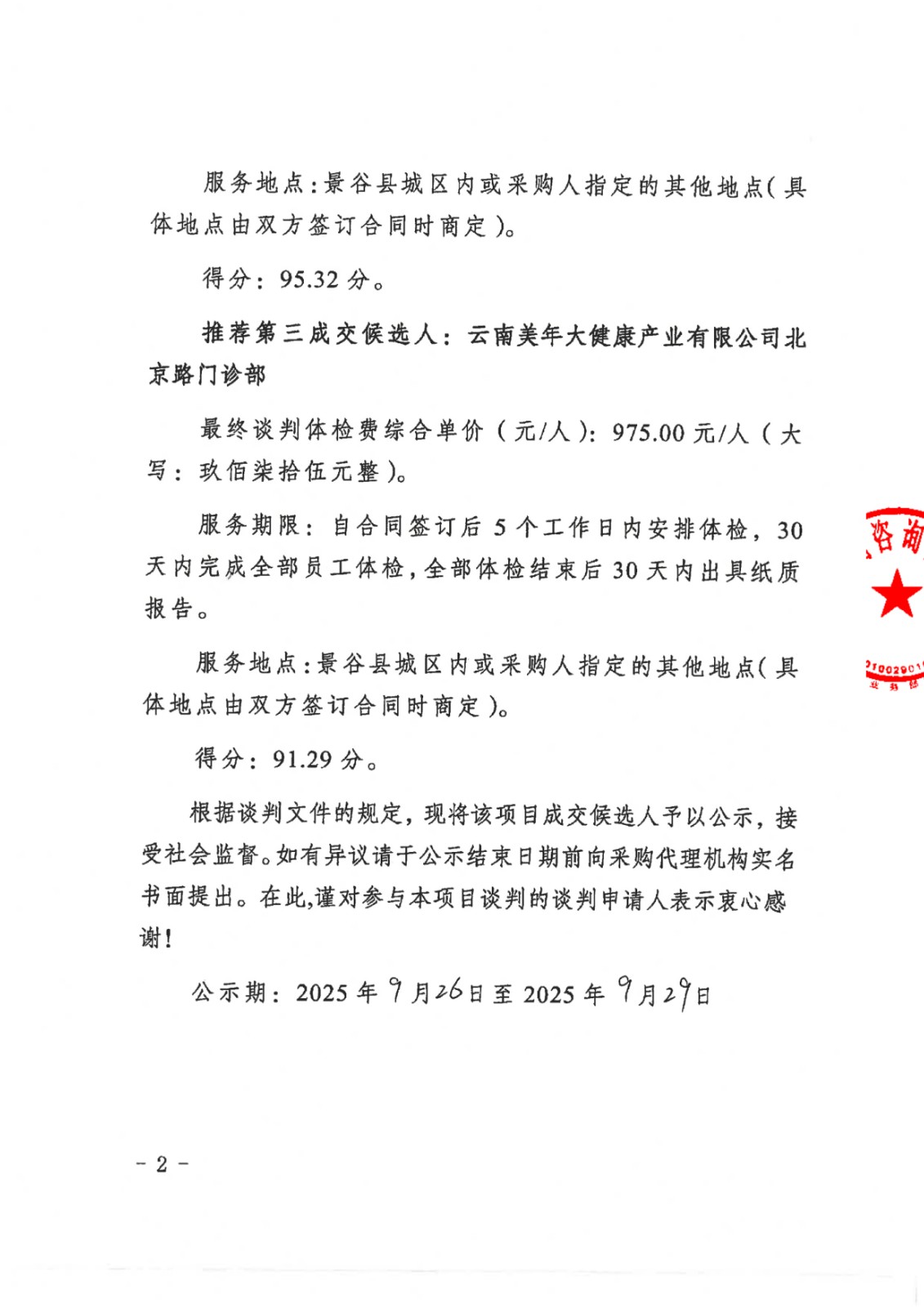 云南云景林紙股份有限公司及所屬企業(yè)2025年度職業(yè)健康體檢服務(wù)成交候選人公示