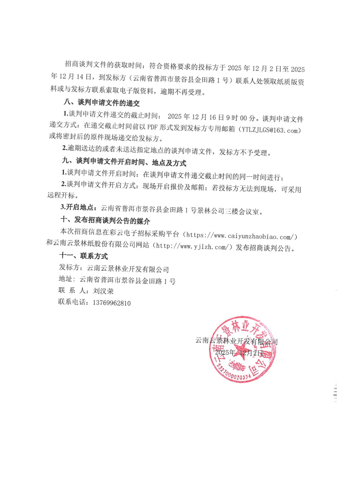 云南云景林紙股份有限公司 2025年35kv線路清障邀請詢比采購成交候選人公示