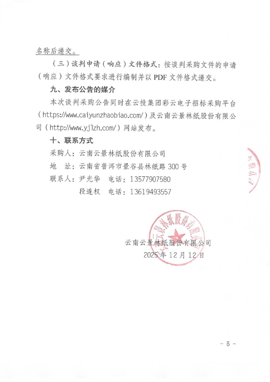 云南云景林紙股份有限公司2026年辦公低值易耗品合格供應服務商人圍談判采購公告
