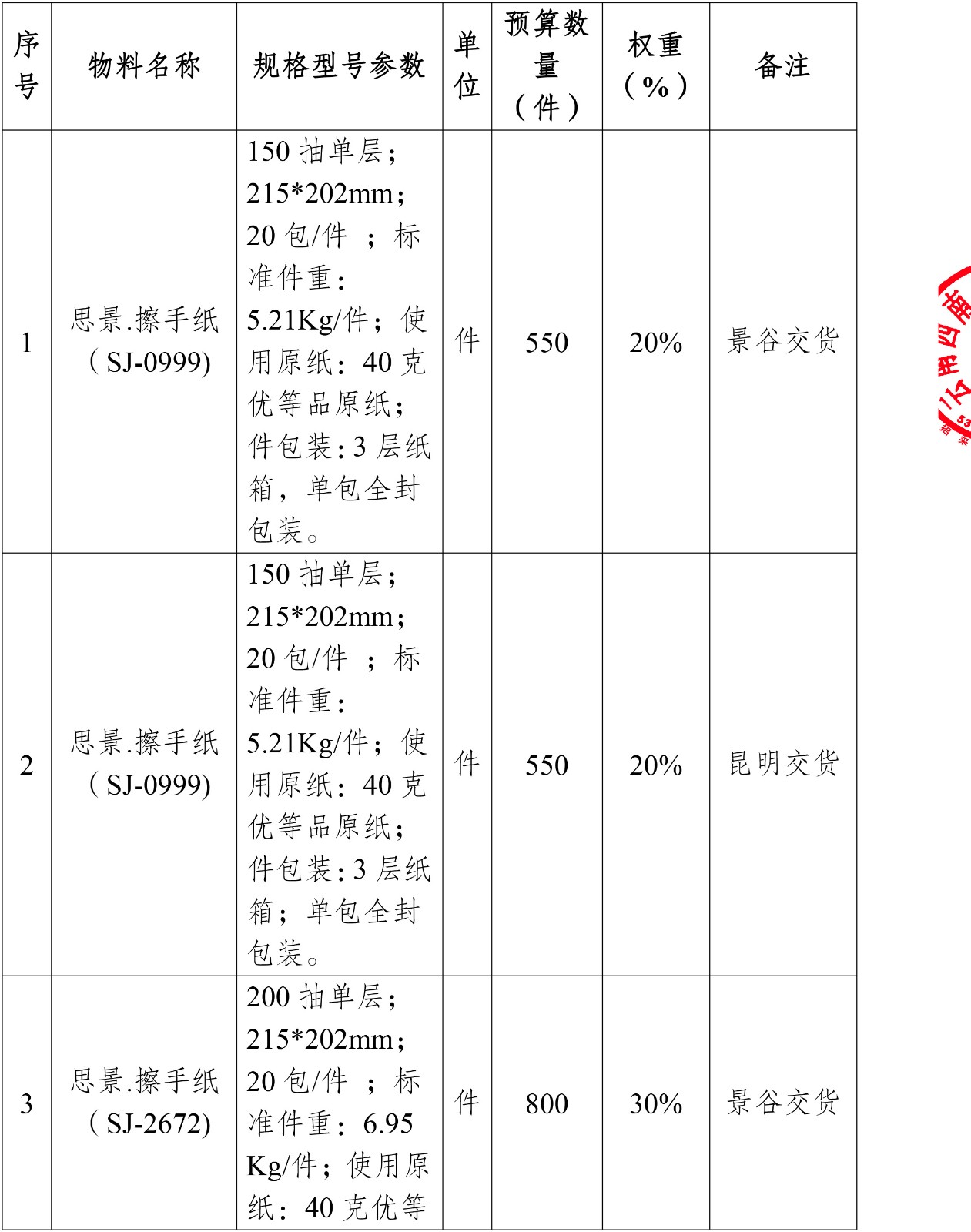 云南云景林紙股份有限公司2026年至2028年思景擦手紙采購項(xiàng)目詢比公告