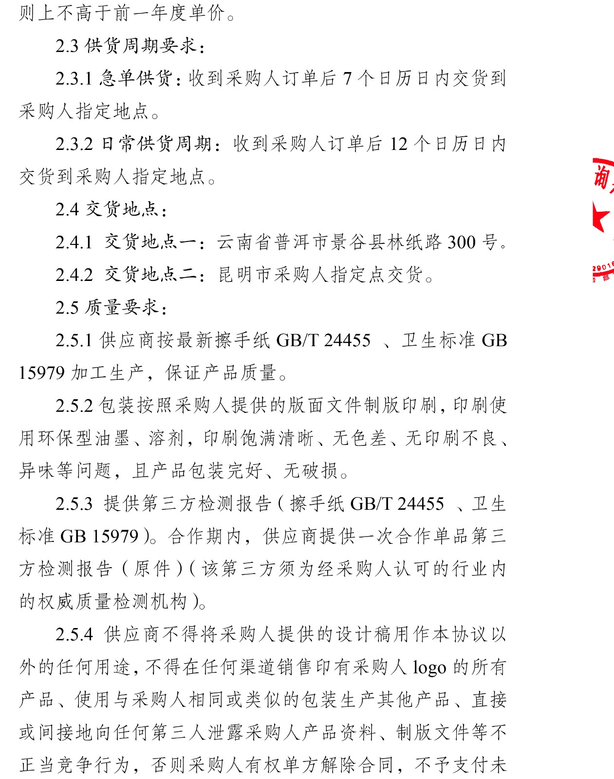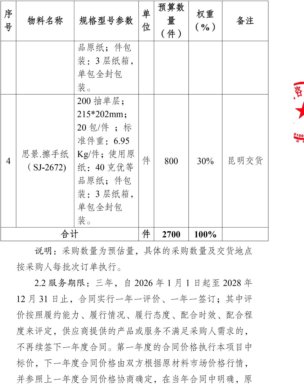 云南云景林紙股份有限公司2026年至2028年定制紙杯采購項(xiàng)目云南云景林紙股份有...