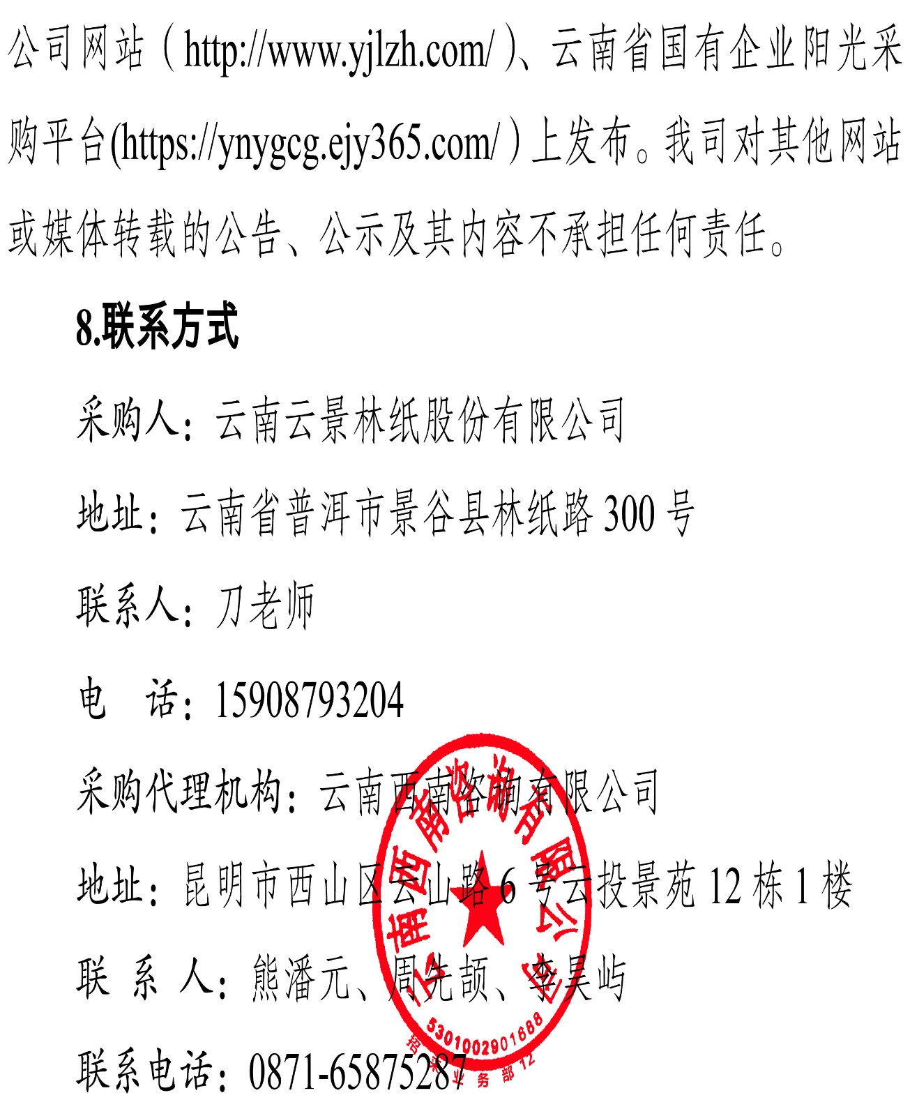 云南云景林紙股份有限公司2026年至2028年思景盤紙采購項目詢比公告