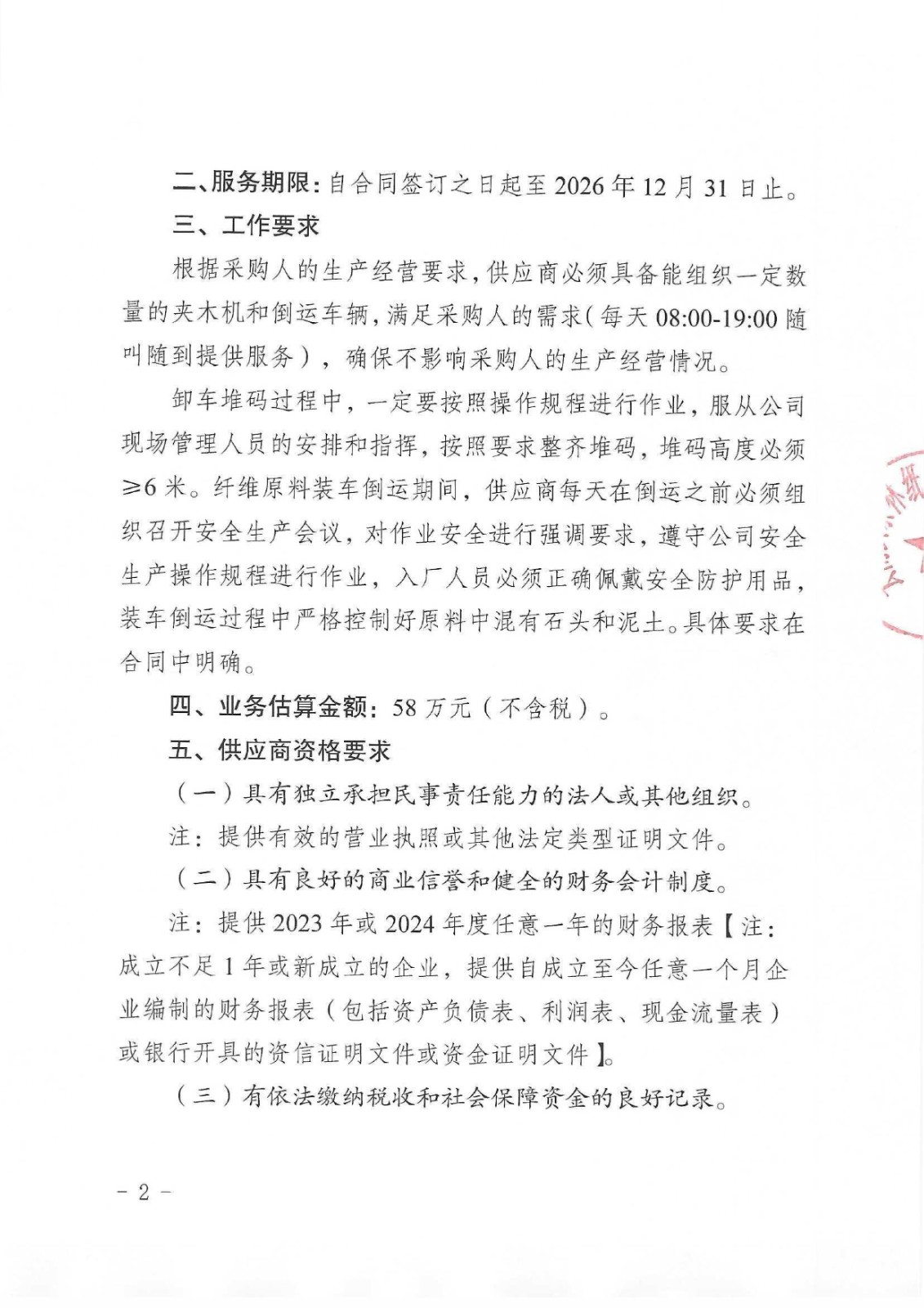 云南云景林紙股份有限公司2026年纖維原料卸車堆碼及裝車倒運業(yè)務(wù)承攬(二次)談判采購公告