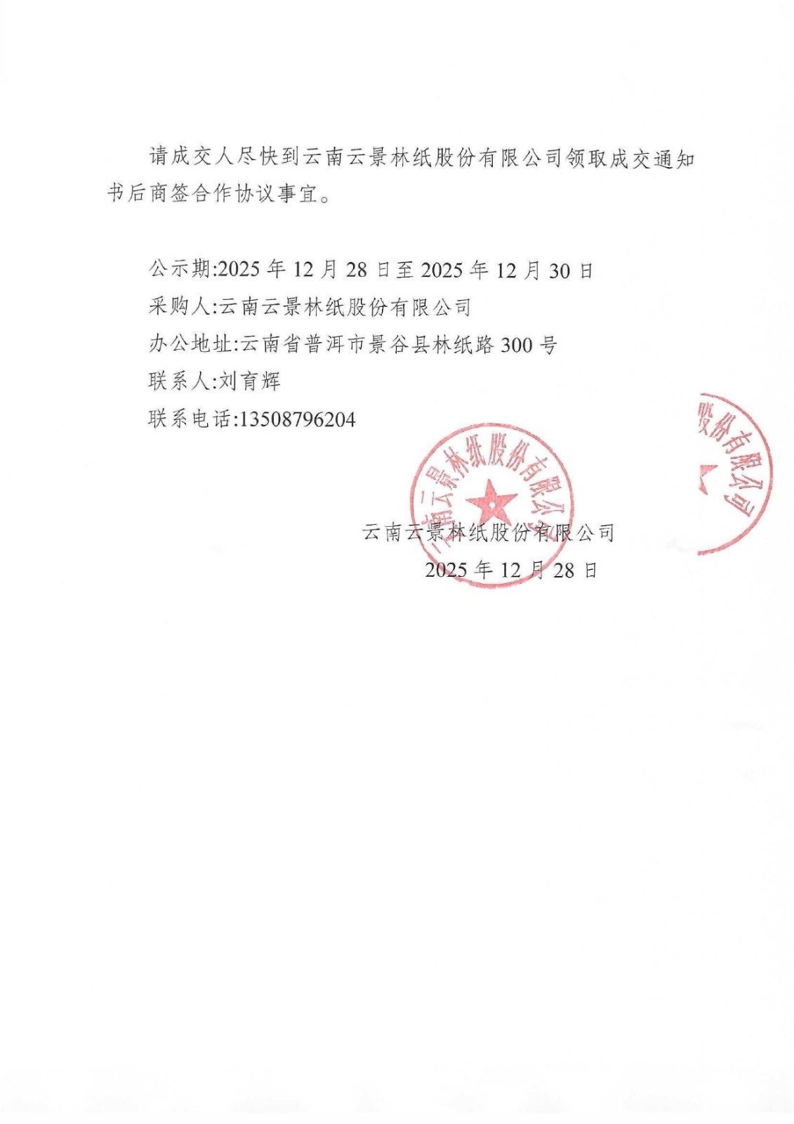 云南云景林紙股份有限公司2026年苗木花卉合格供應(yīng)服務(wù)商人圍采購成交結(jié)果公示