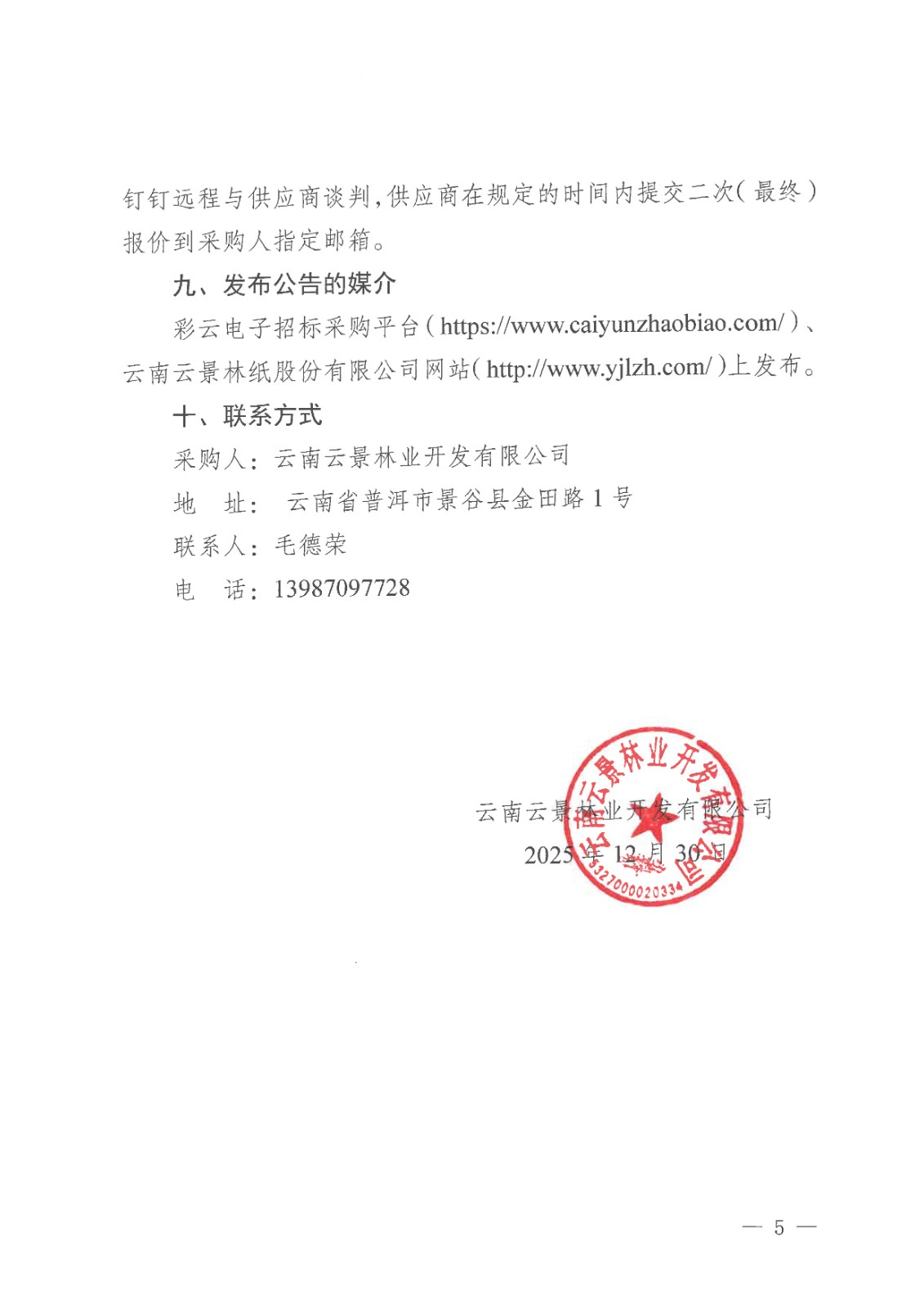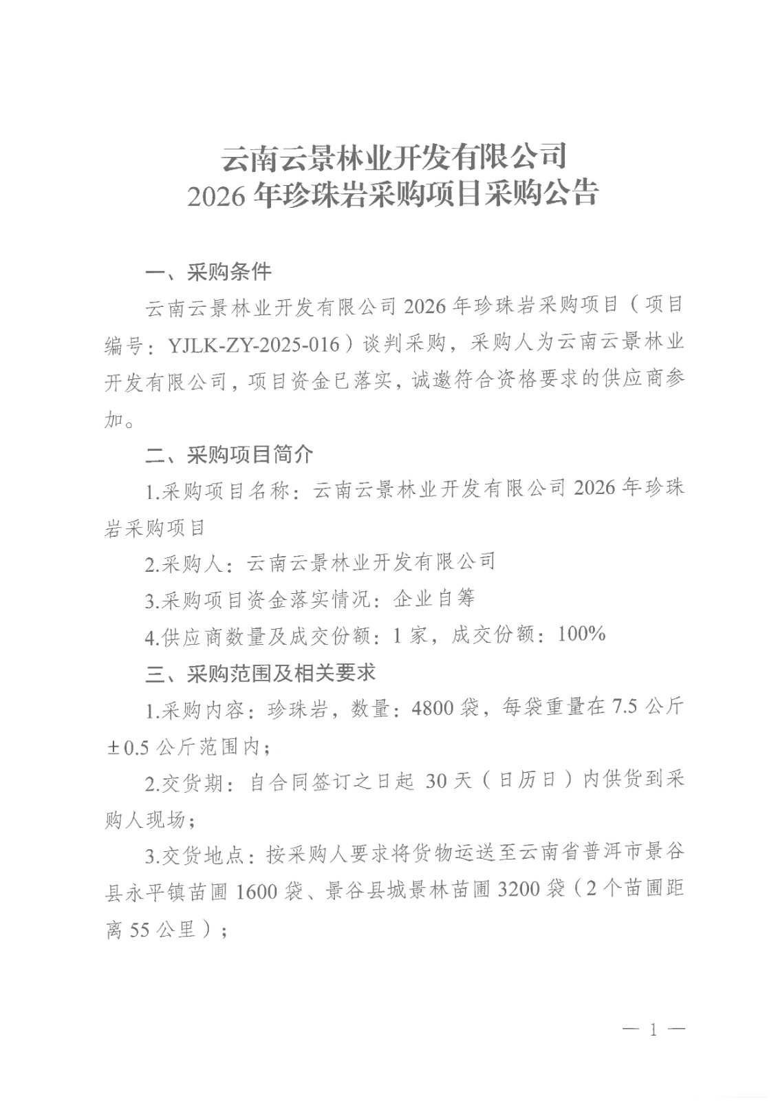 云南云景林業(yè)開發(fā)有限公司2026年珍珠巖采購項(xiàng)目采購公告