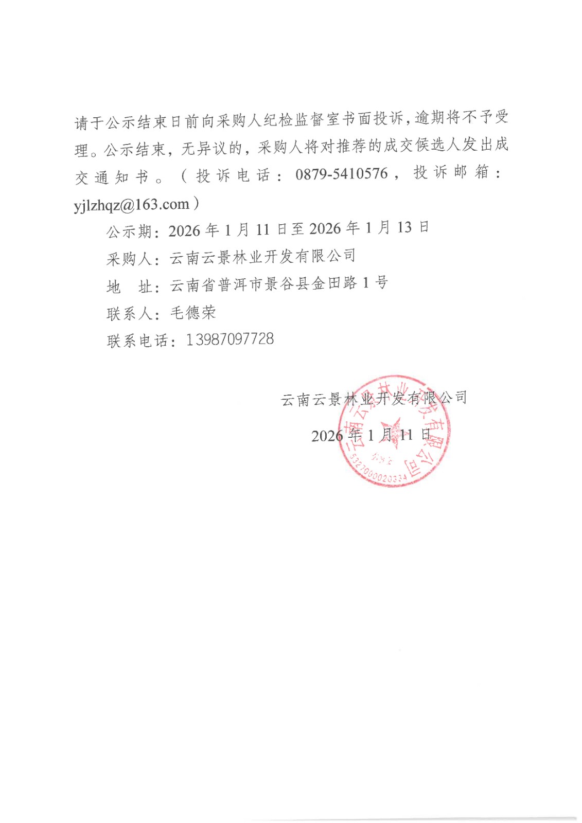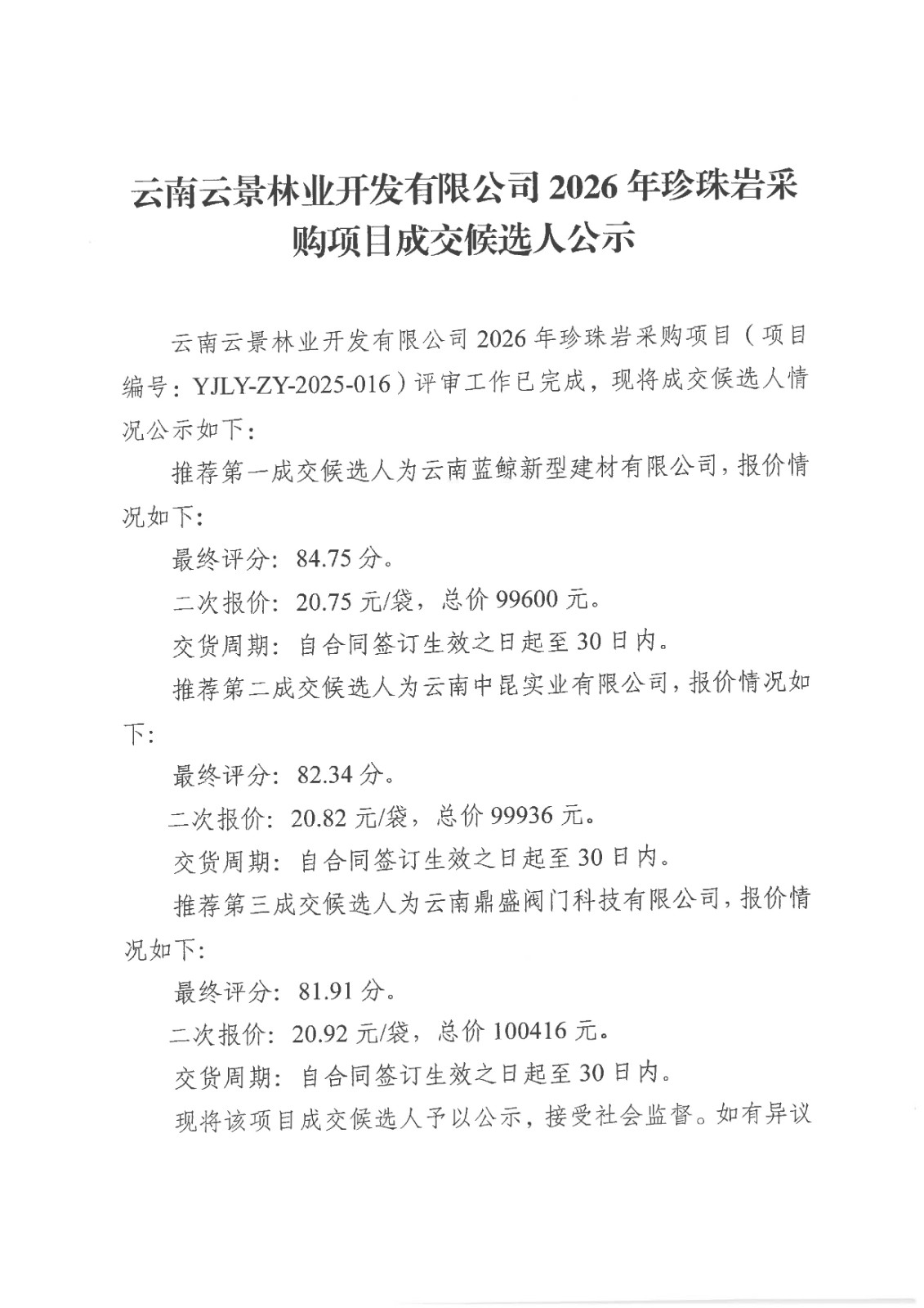 云南云景林業(yè)開發(fā)有限公司2026年珍珠巖采購項目成交候選人公示