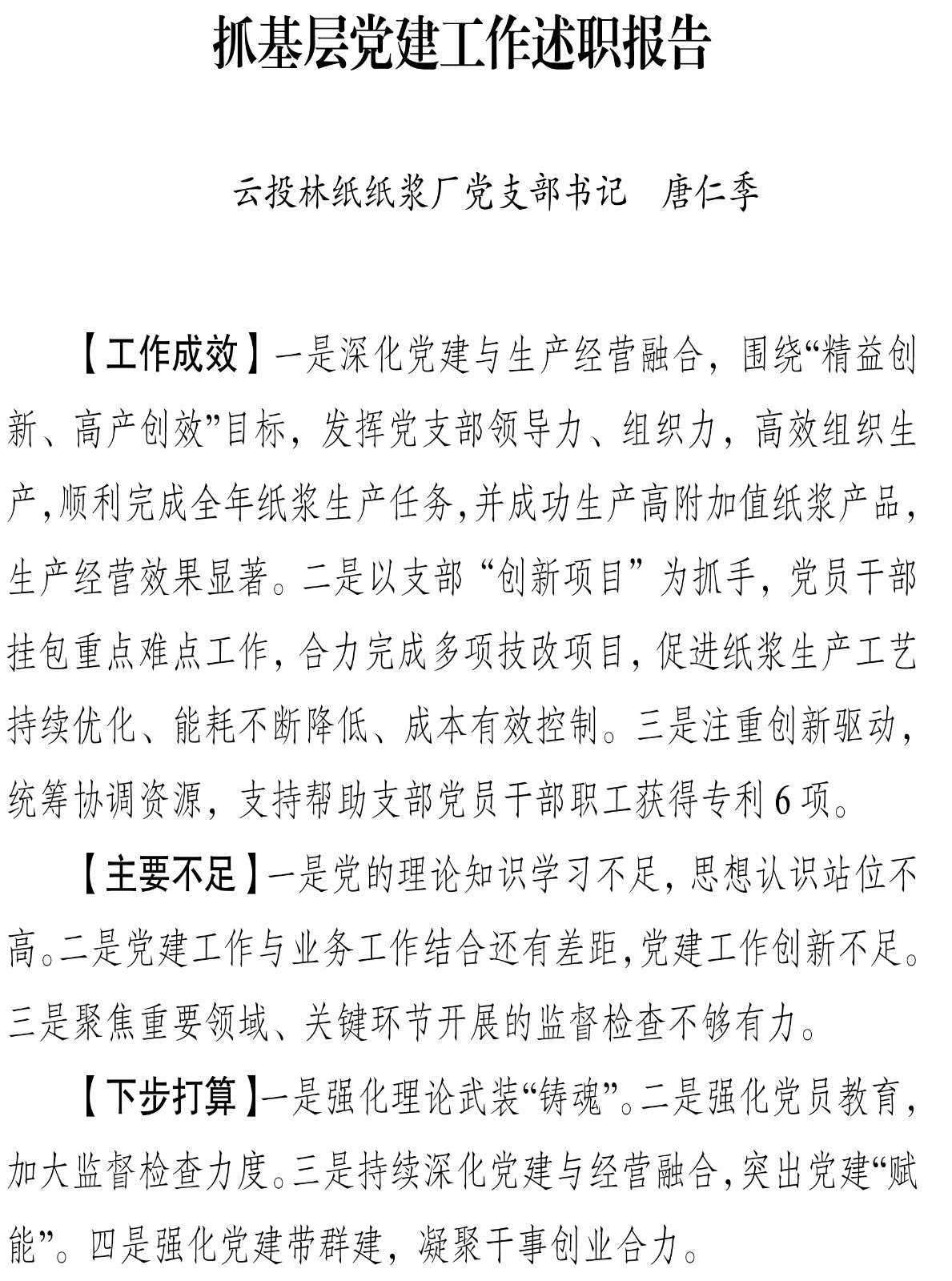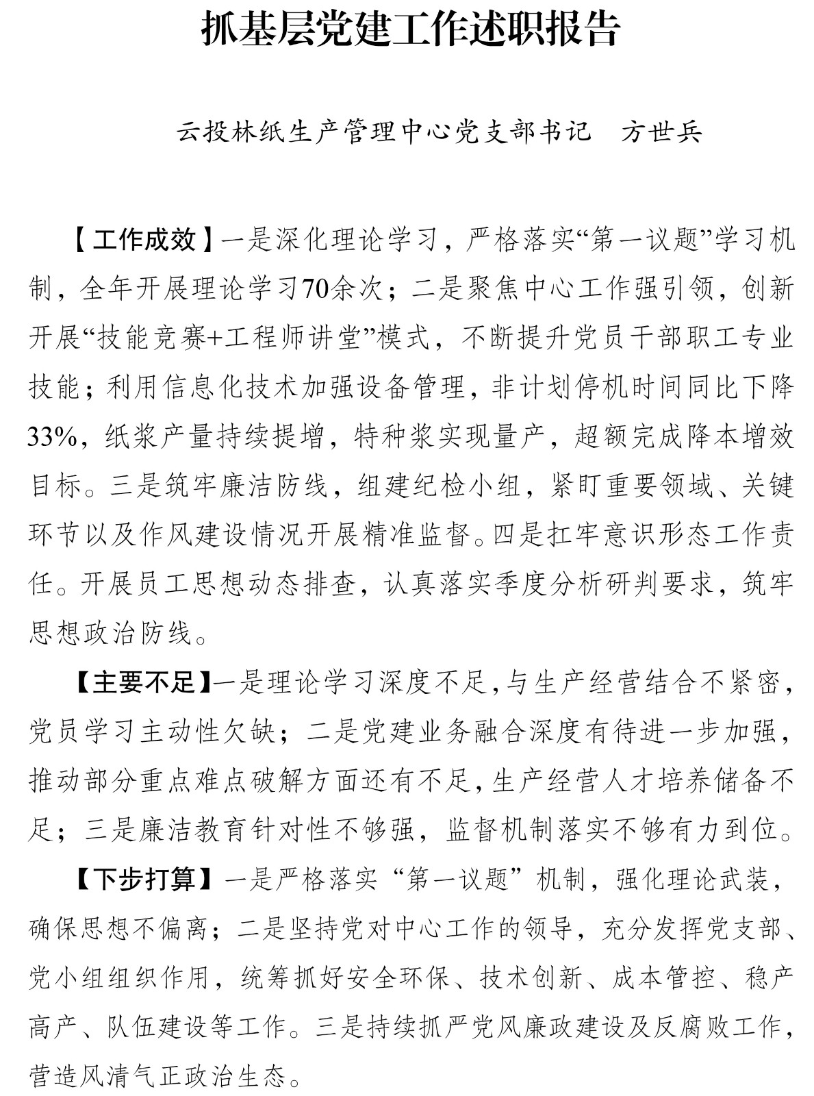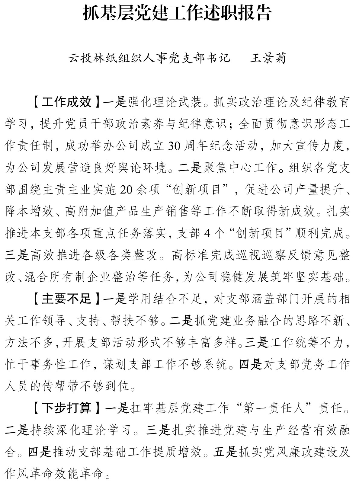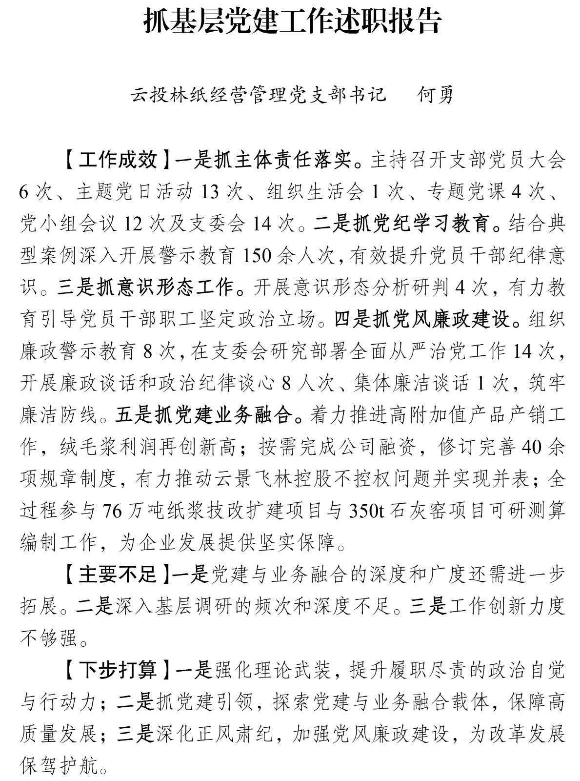 云投林紙黨支部書記抓基層黨建工作述職報告匯編