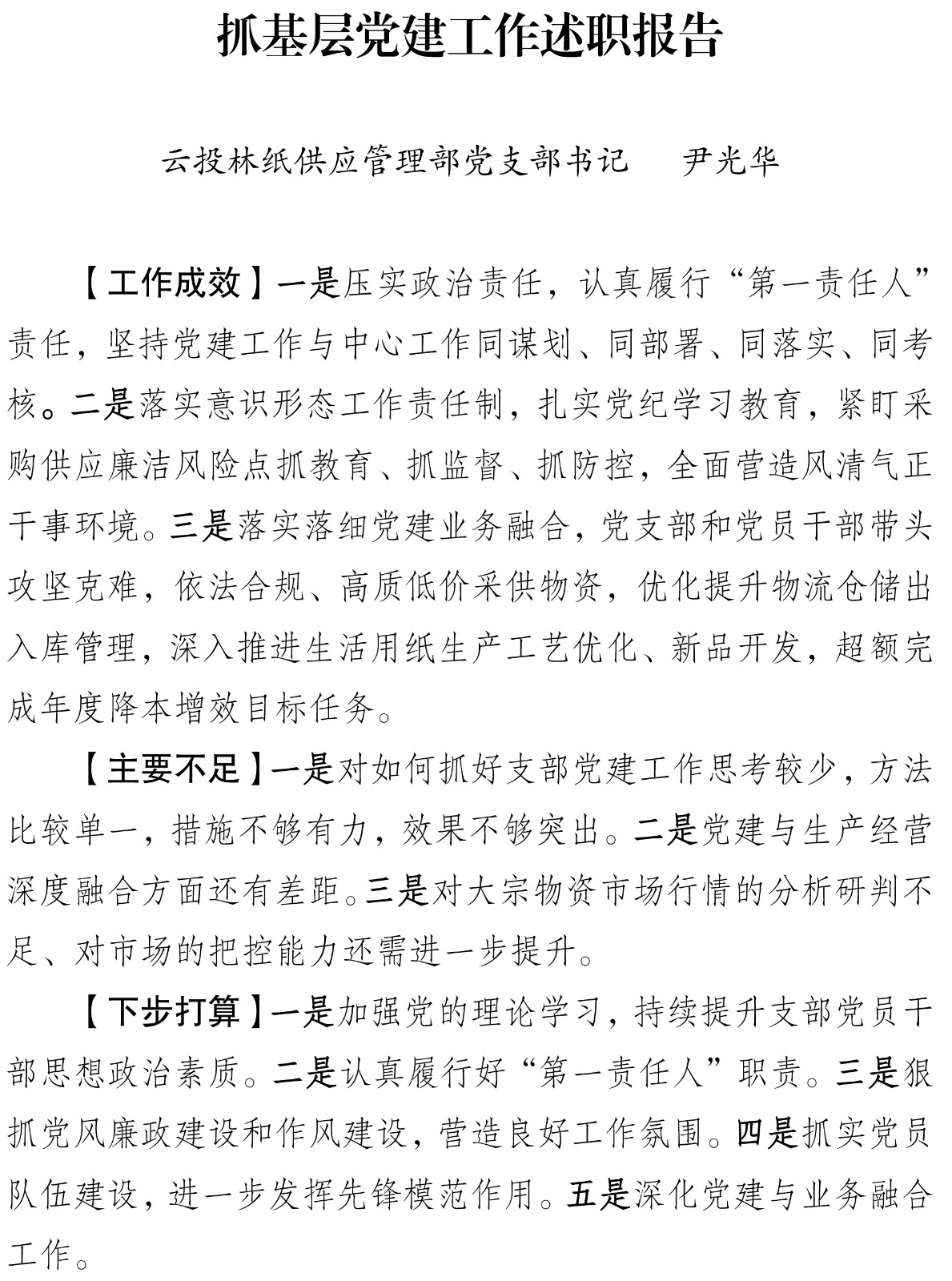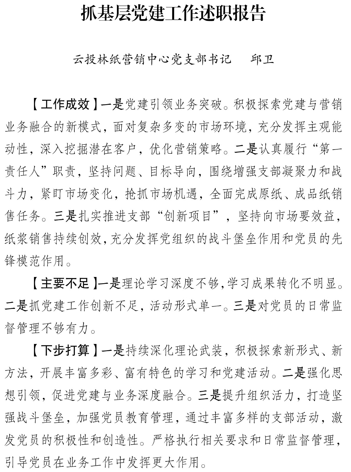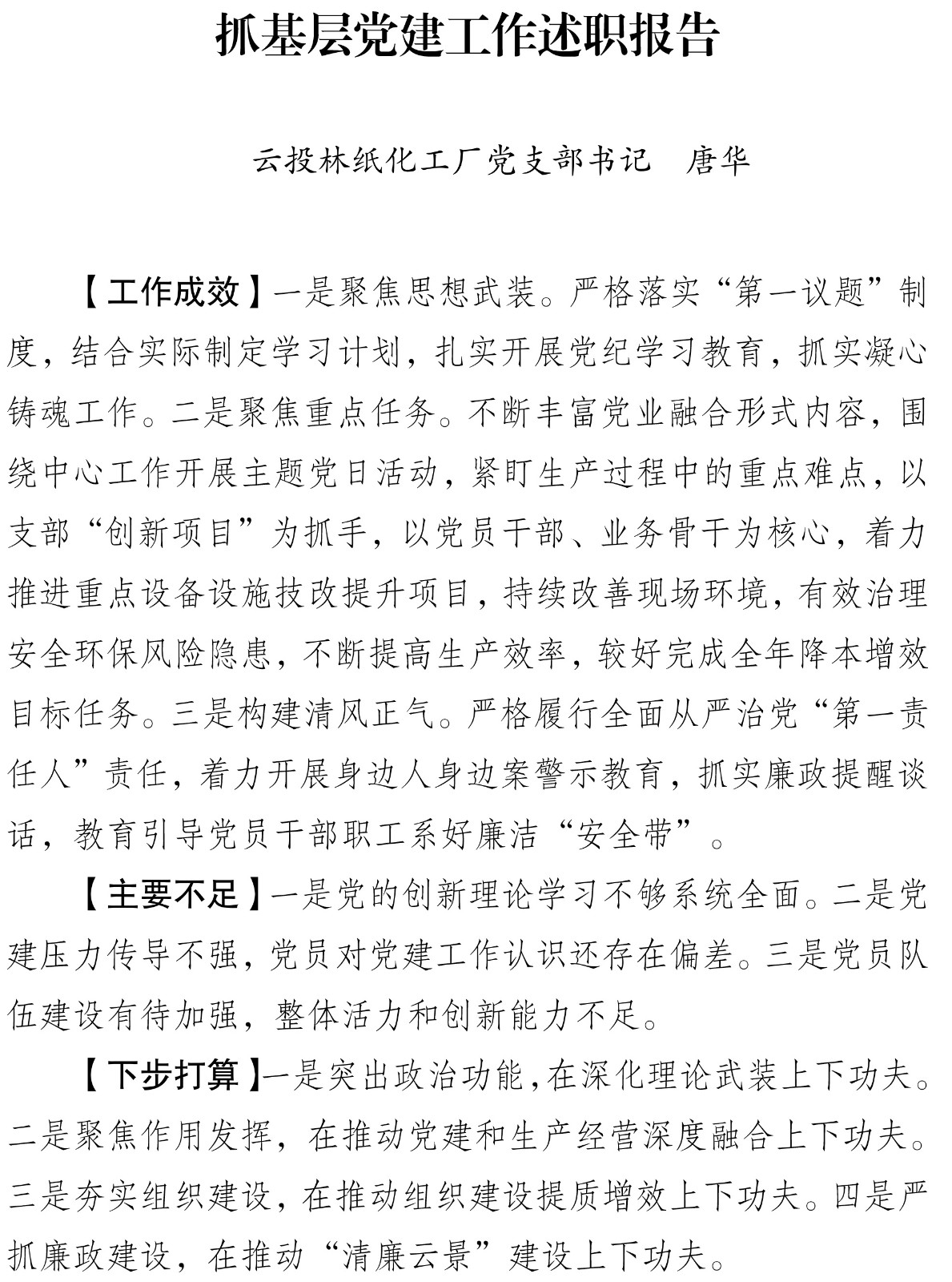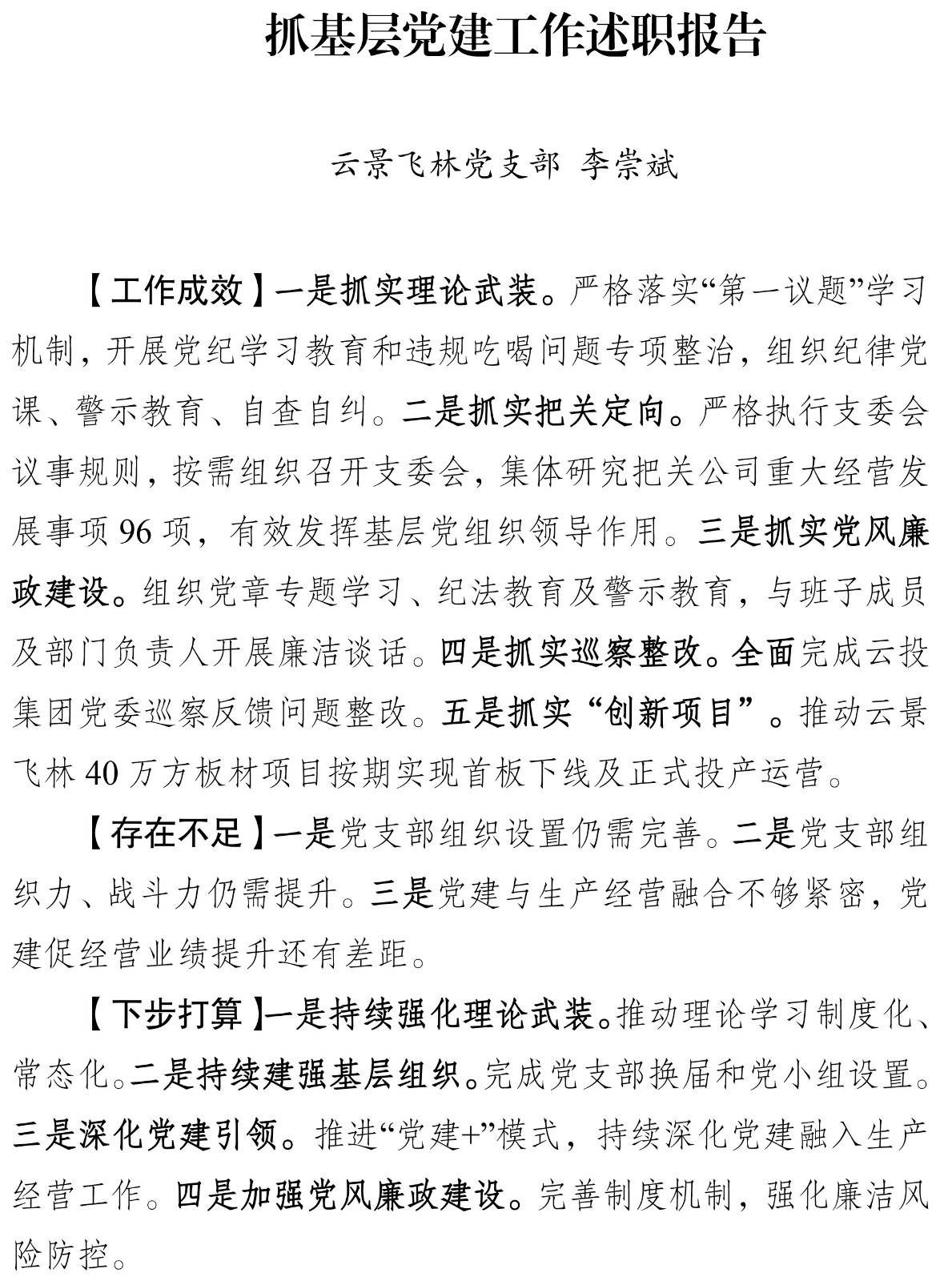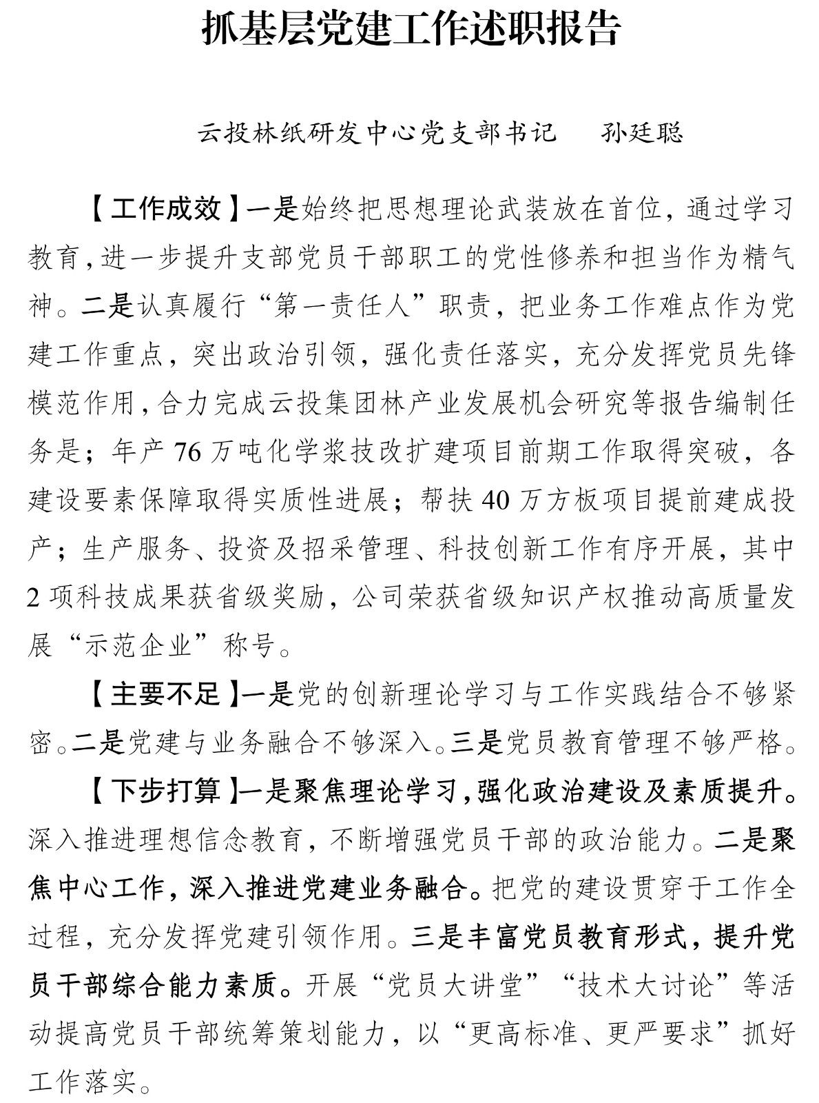 云投林紙黨支部書記抓基層黨建工作述職報告匯編